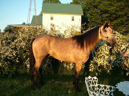 "Docs Dee Jay Bar" 2001 Stallion (Hesa Shoshoni Doc X Jay E Star) "DJ" was a Buckskin son of "Hesa Shoshoni Doc". He was double registered A.Q.H.A. and F.Q.H.R. He won Hi Point Weanling Stallion for Michigan F.Q.H.R. in 2001 and in 2002 he won his halter class his first trip out in the F.Q.H.R. in a combined class of yearling, two, and three year olds. He was 2002 HI- POINT YEARLING STALLION for the Michigan Affiliate of the F.Q.H.R. He was not been shown after his yearling year, due to other commitments. "DJ" has also attended several "Out There With Horses" events sponsored by A.Q.H.A. as an equine ambassedor for events held in Hastings, and Plainwell. "DJ" Stood 16 Hands Tall and was about 1100 lbs. Unfortunately we lost "DJ" the fall of 2018. He will be greatly missed.