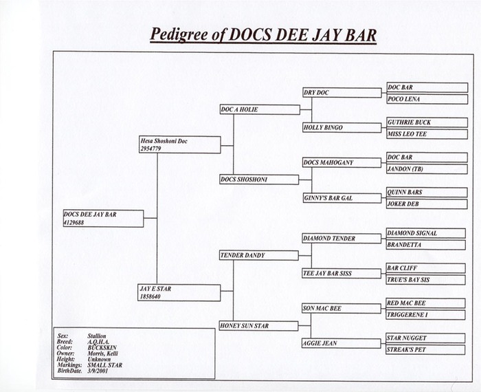 Hesa Shoshoni Doc- (Sire of Docs Dee Jay Bar)